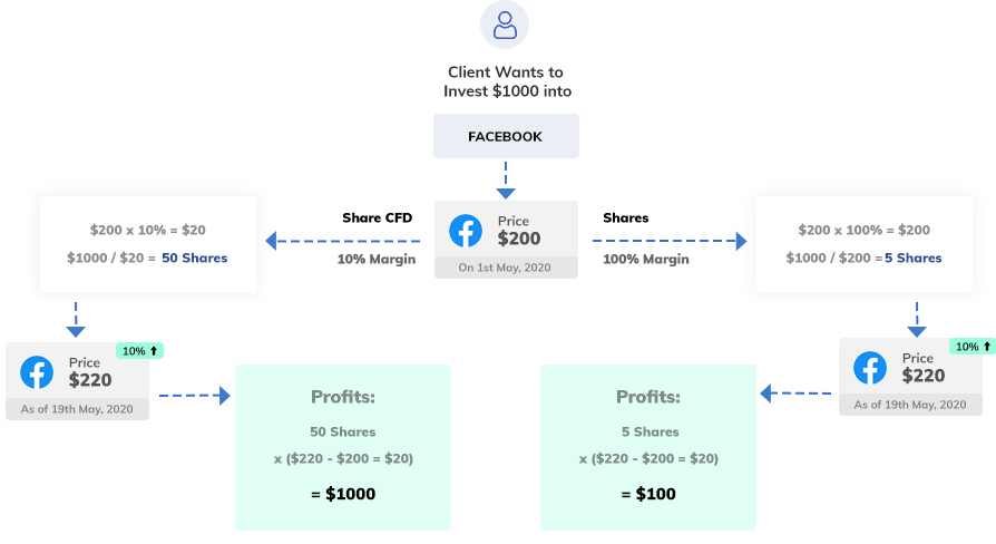 One of the biggest benefits of trading CFDs on shares is that you’ll be able to gain full exposure to the movement of stock prices with a small initial deposit.